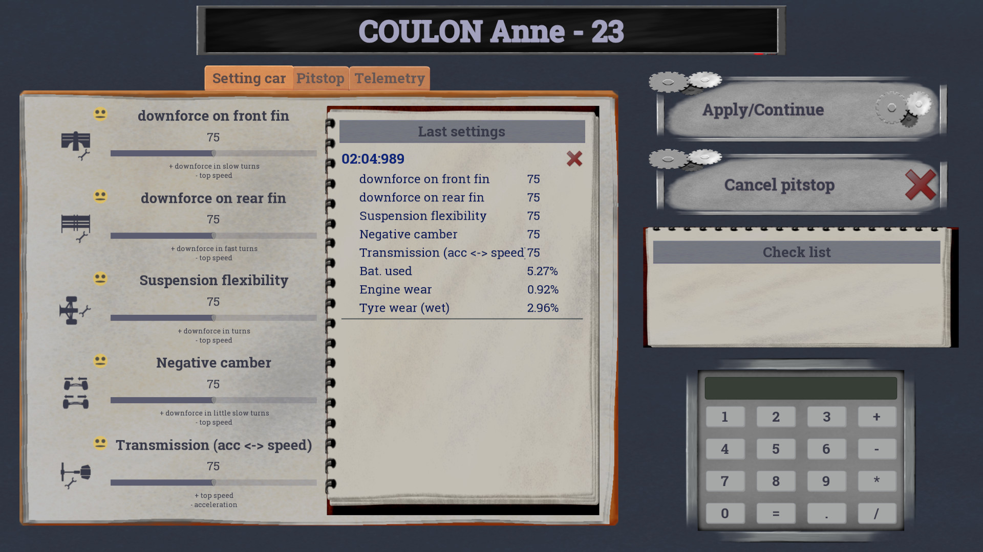 Vous prenez le rôle d'un manager d'une écurie de monoplace. Vivez des weekends de course et gérer votre site et votre personnel.